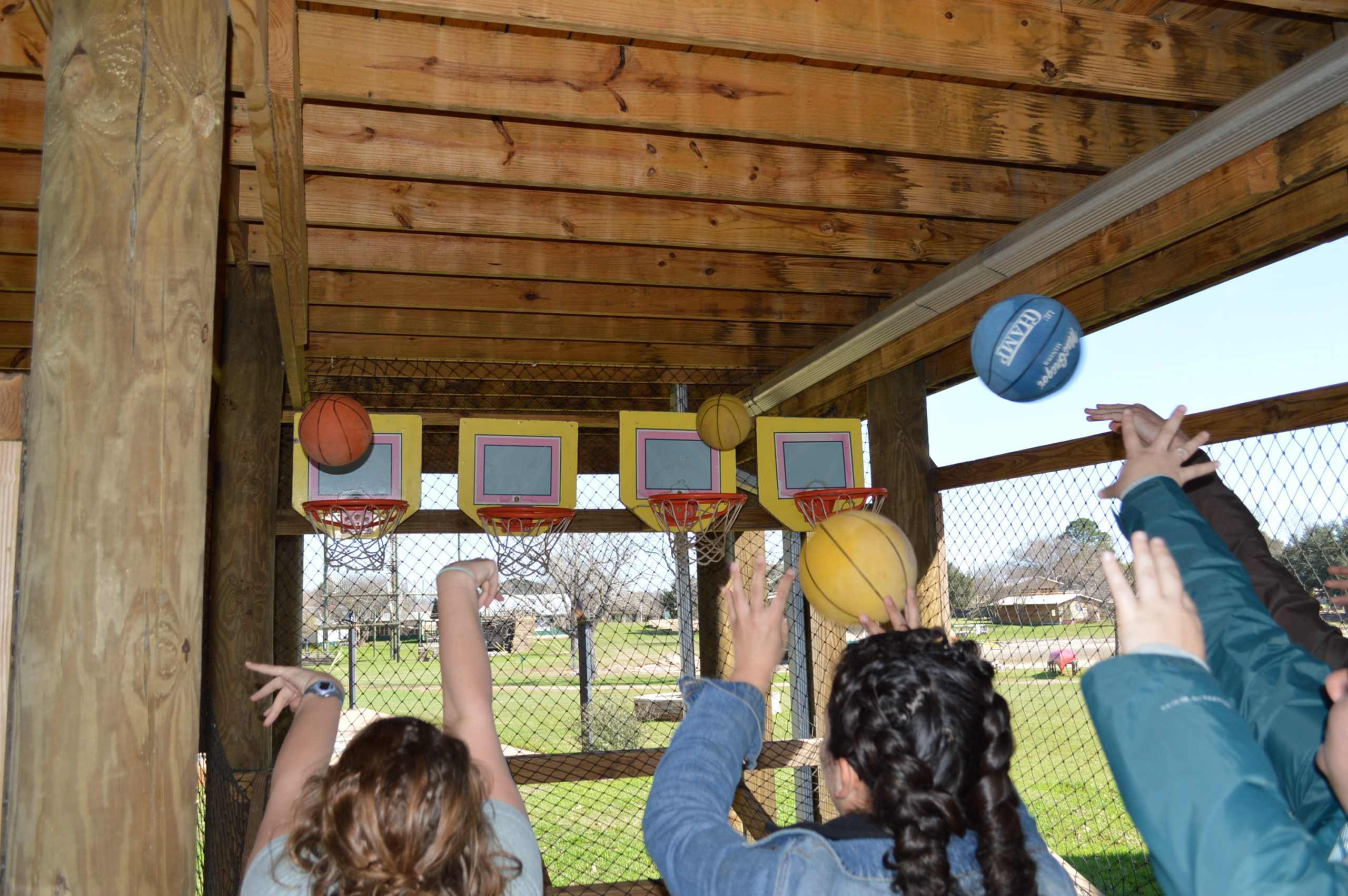 Olympia and The Parthenon are our two open air pavilions. They are similar, each with slight differences, just on opposite sides of camp. Both are well lit, open-air pavilions that shade our basketball courts. They can seat several hundred people or provide enough space to play games with smaller groups. Great for activities during the day or at night.