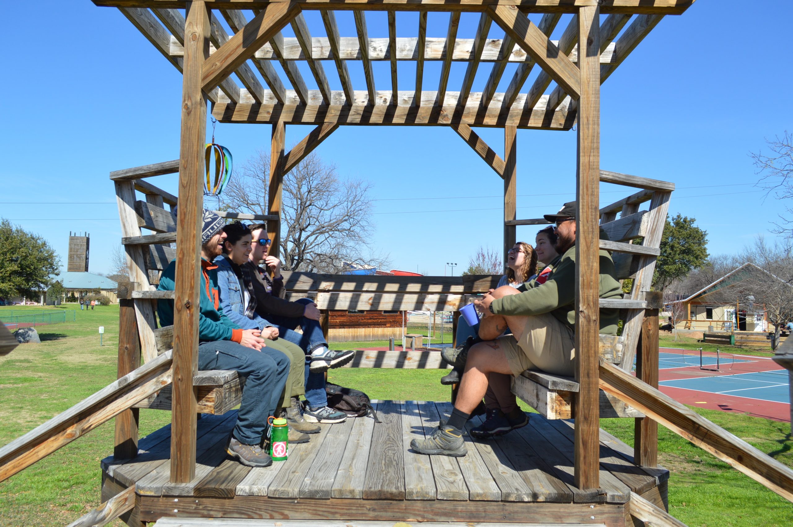 Often large groups want to break up into smaller groups during their visit. Aside from the grassy shade under one of our large oak or pecan trees, we have several gazebos, decks, shaded bleachers, and fine arts cabins that are great for groups of 10-20 to meet.